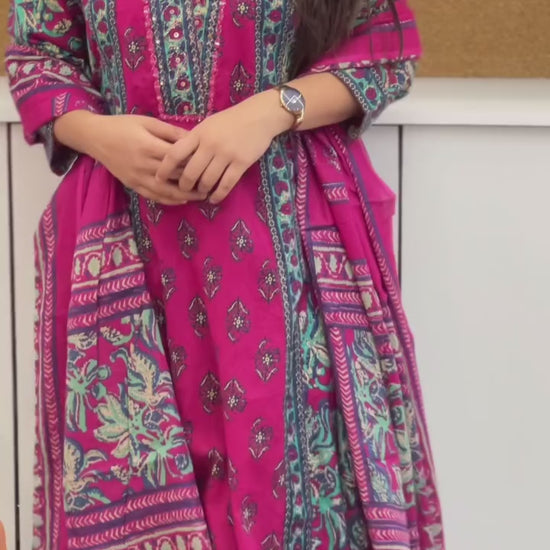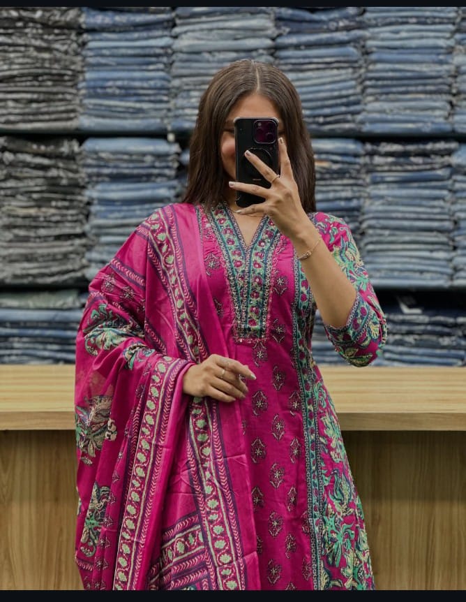 This A-line palazzo set is perfect for the summer season with its vibrant floral print and confident , the included matching dupatta completes the look and adds an extra touch of style.