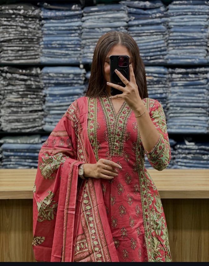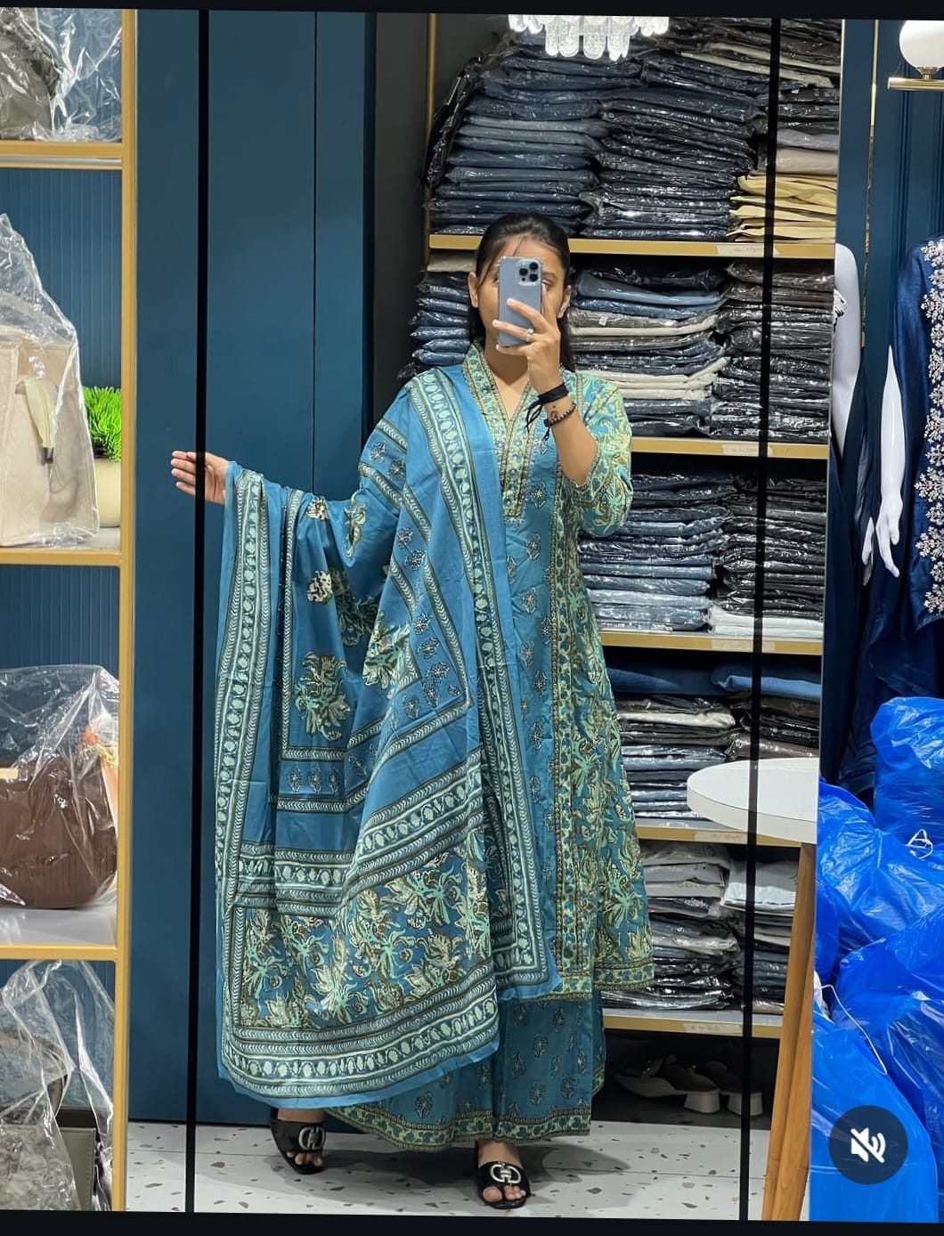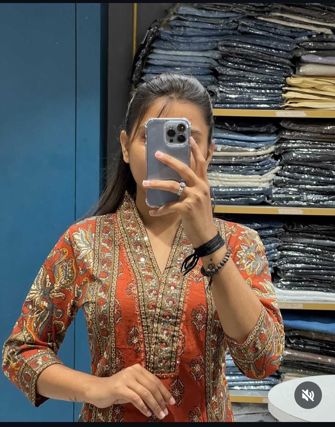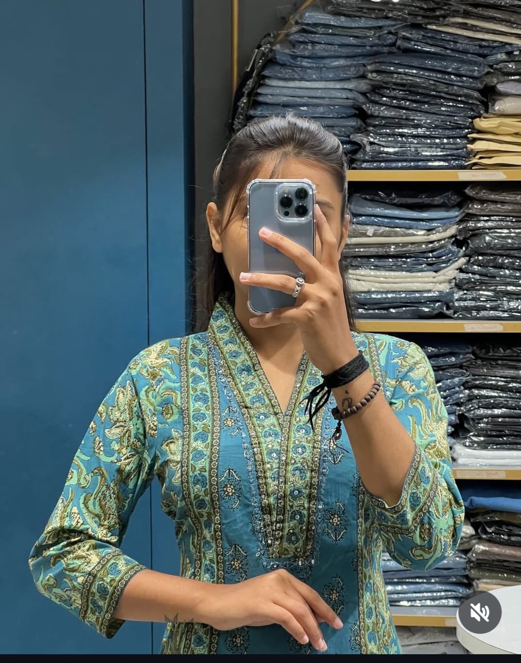 Fabric:-cotton (hand block print) kurti plazo beautiful lace
