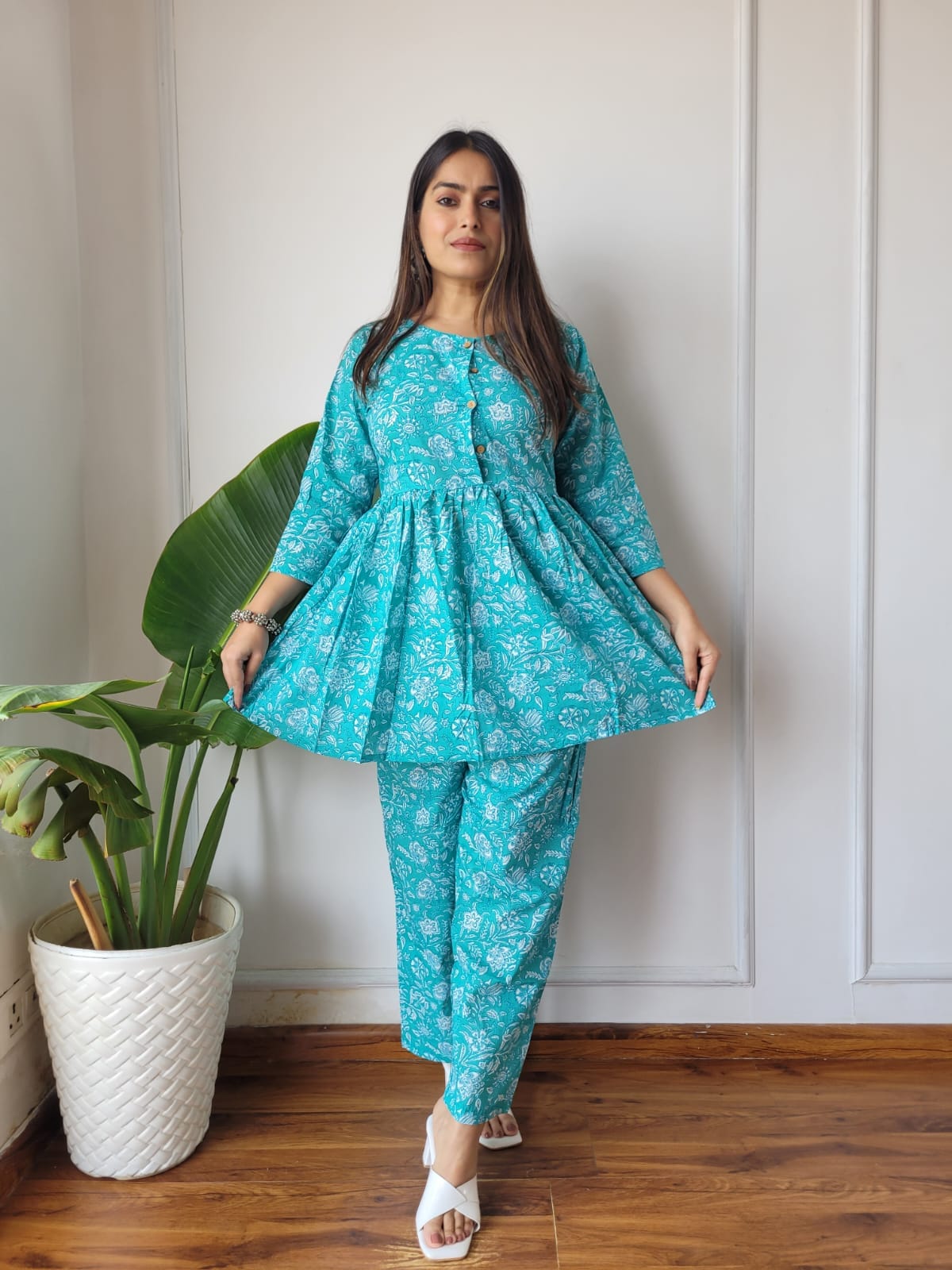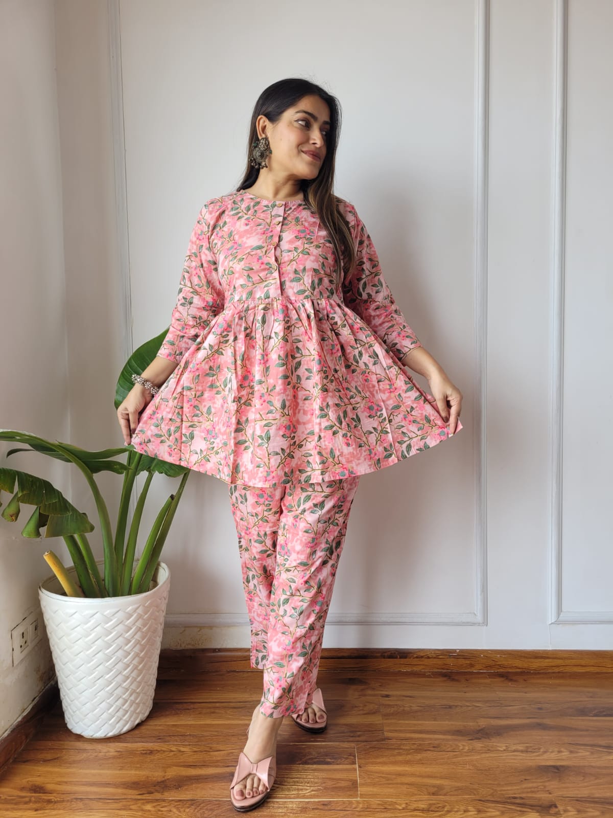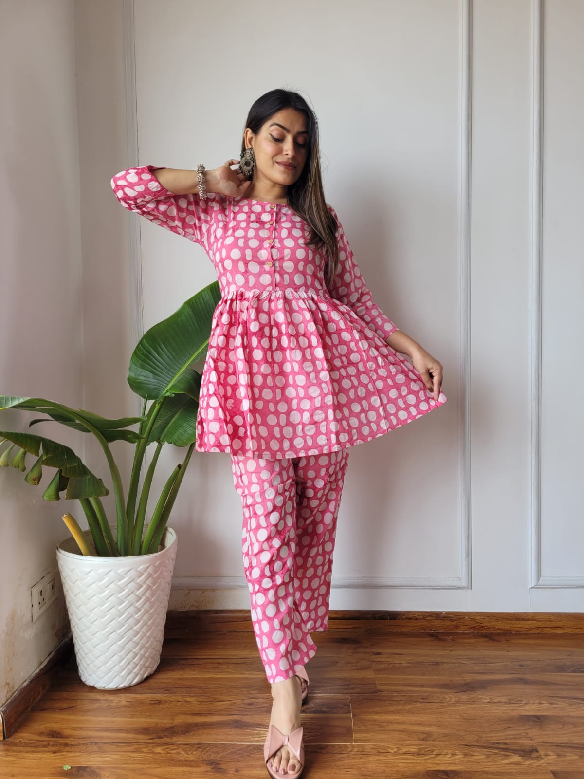 Cotton Handblock Print Women Co-ord Sets Kurti Pant