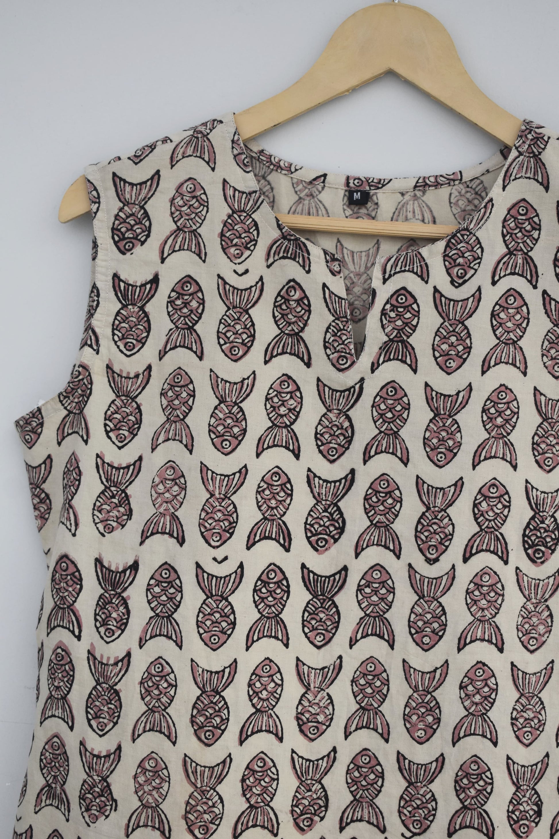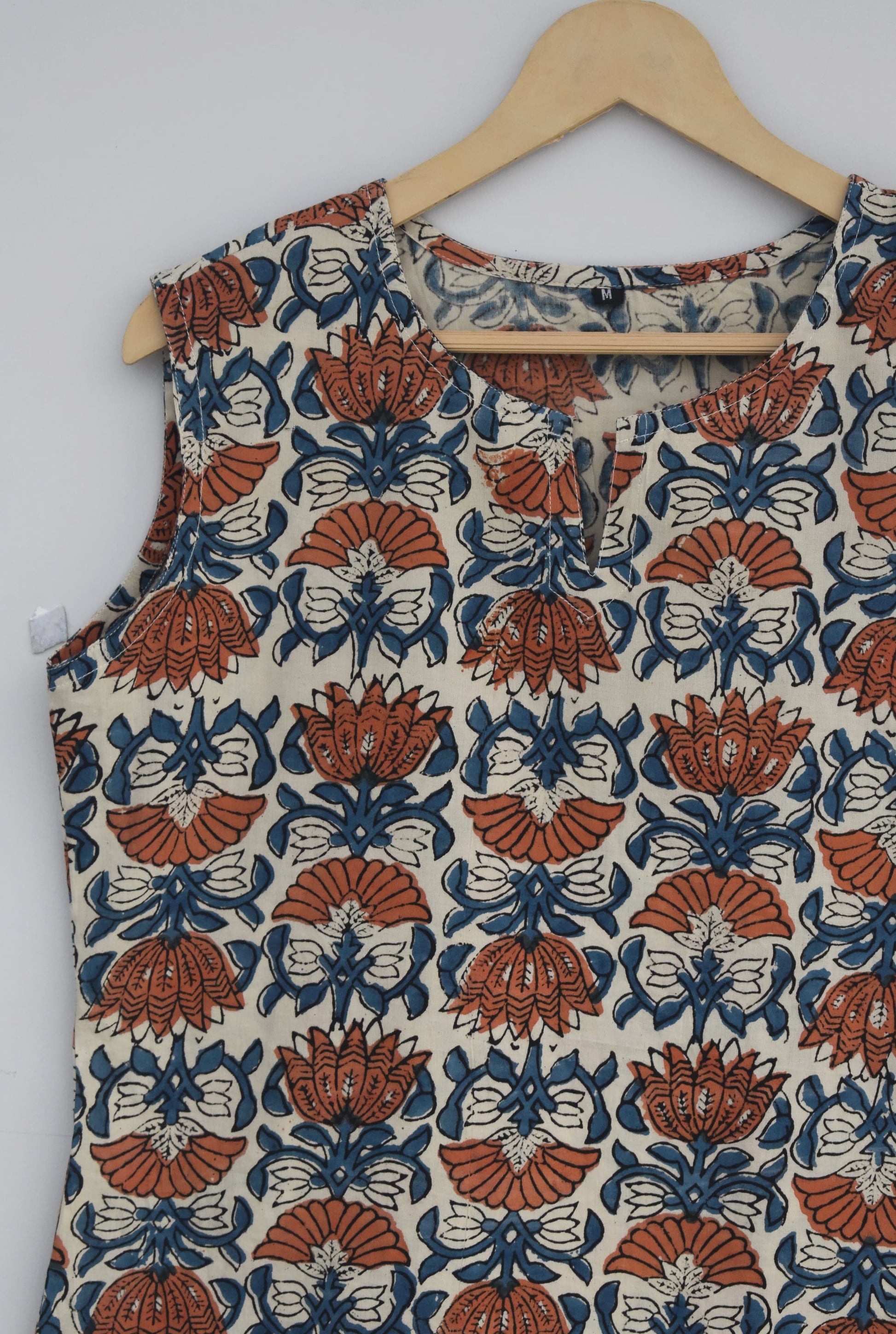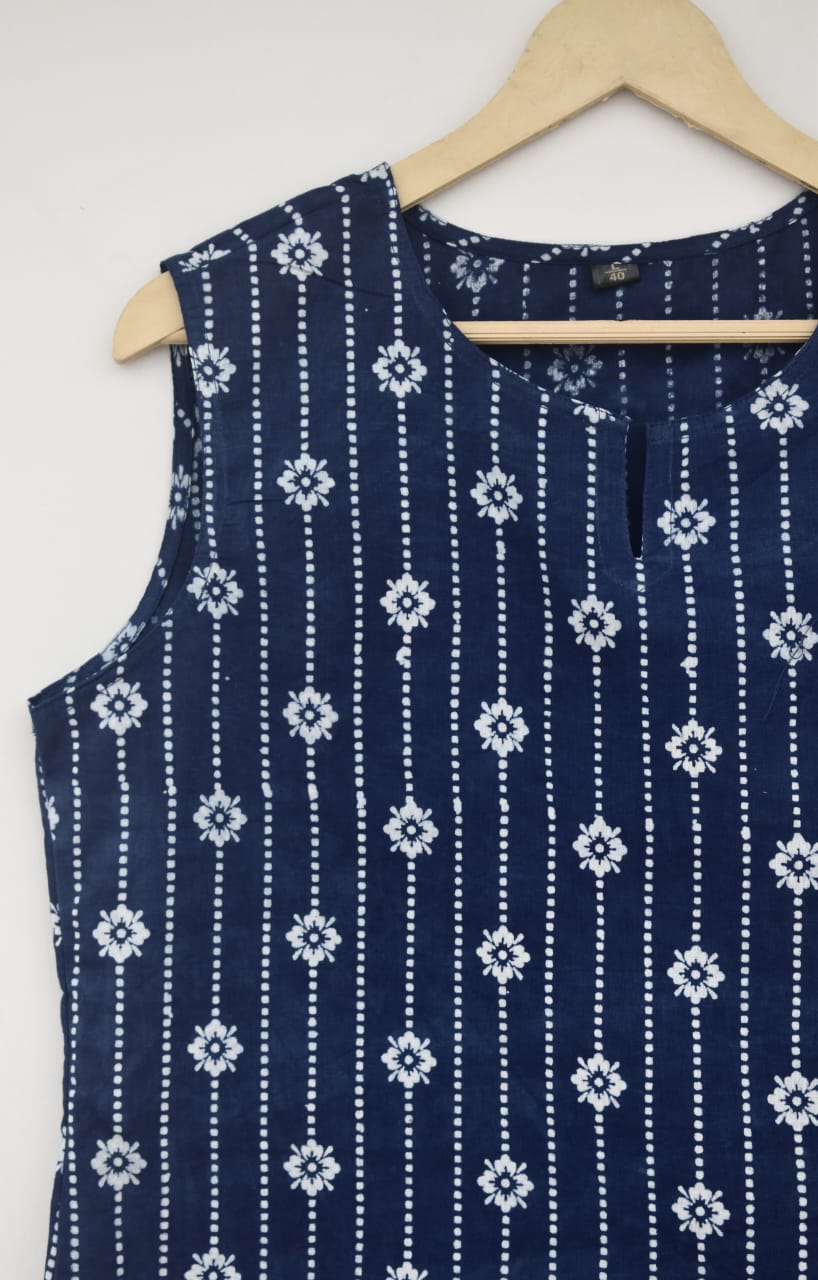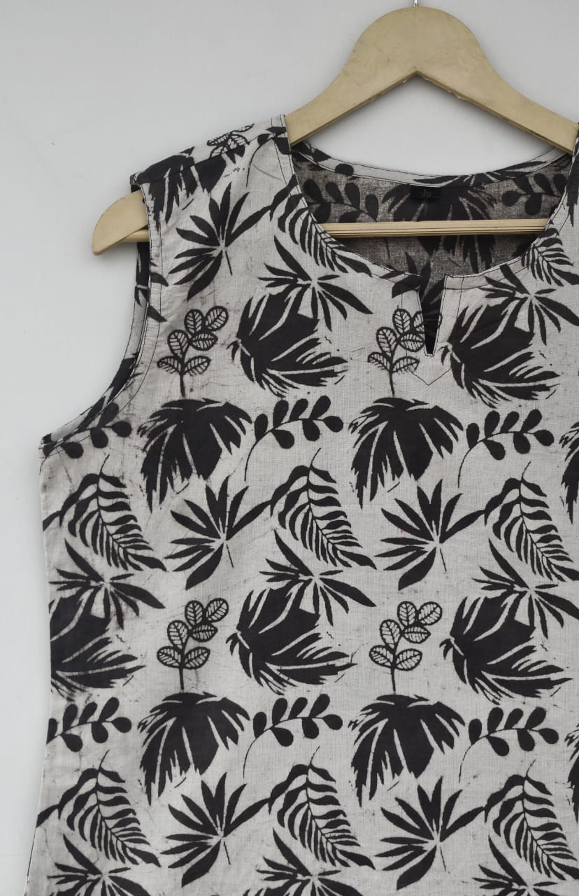 Cotton sleeveless tops kurti handblock print handmade natural colors